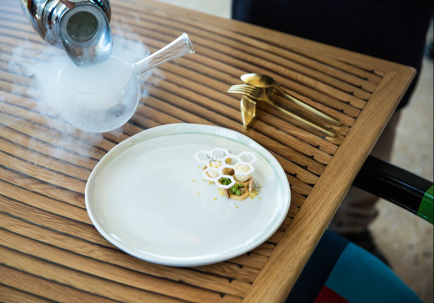 To accompany a scallop dish, Wessels has recreated an intense seawater which, when boiled and poured over dry ice, replicates the unmistakably salty rock-pool scent. Two 3D-printed elements – one of them a white-chocolate, Japanese-style ganache – feature in his deconstructed lemon-meringue pie. It’s one of the first restaurants in Australia using the cutting-edge technology.