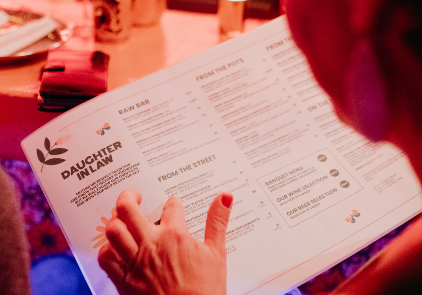 Daughter in Law Byron Bay is the third iteration of star chef Jessi Singh’s Daughter in Law concept, with sister restaurants preceding it in Melbourne and Adelaide. (Singh also operates two restaurants in Sydney: Don’t Tell Aunty and Pinky-Ji.)
