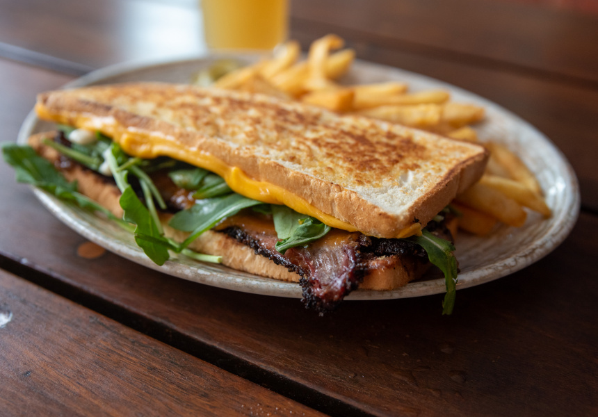 Visit for tastings, gift hampers, artisan homewares, locally roasted coffee, fresh flowers and more. But stay for the toasties, including its take on the Reuben, The Brooklyn, with house-made beef pastrami, sauerkraut, pickles, Dijon and sliced American cheese wedged between thick-cut white tin loaf bread from Cowaramup Bakery. A clever take on a classic.