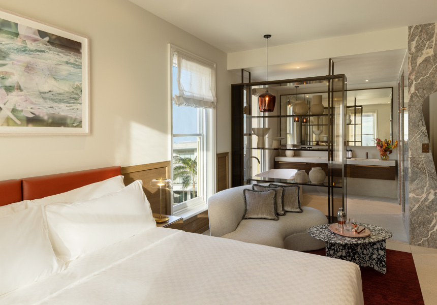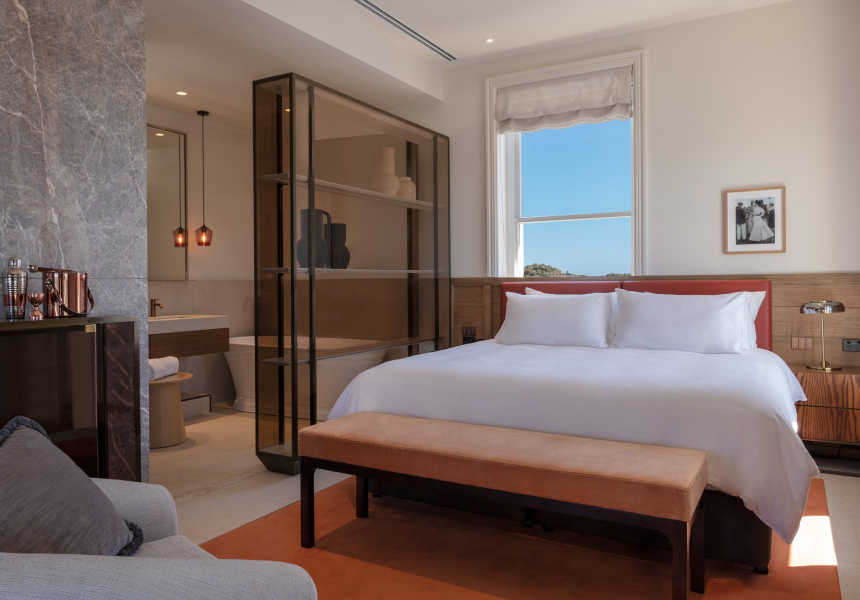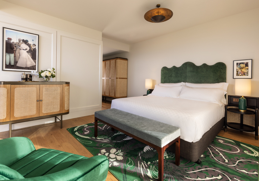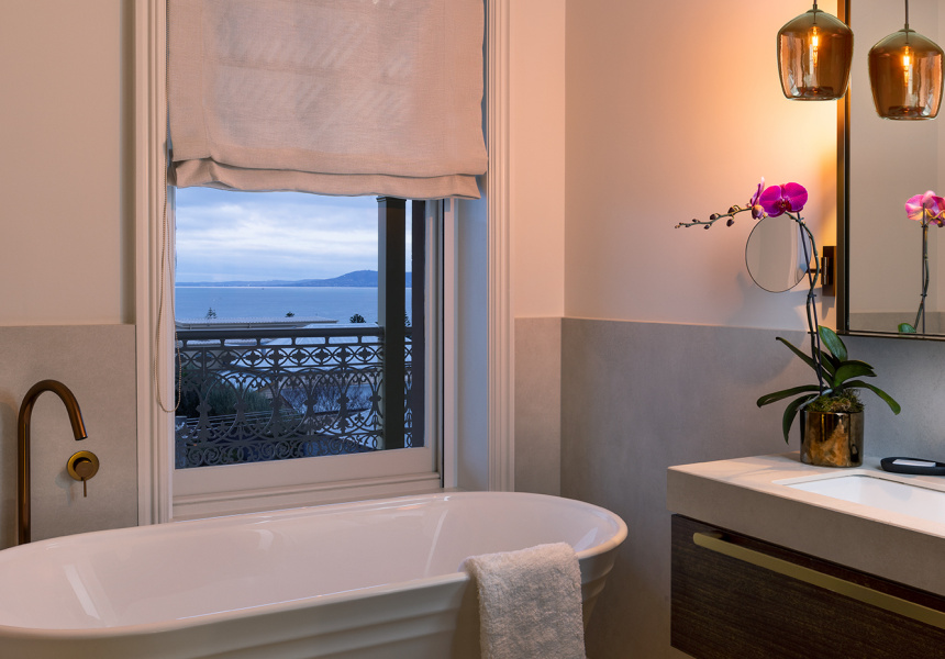 The Woods Bagot-designed building blends luxurious Victorian and art deco details, as the hotel dials up the old-world glamour, complete with plush velvet furnishings and freestanding tubs.