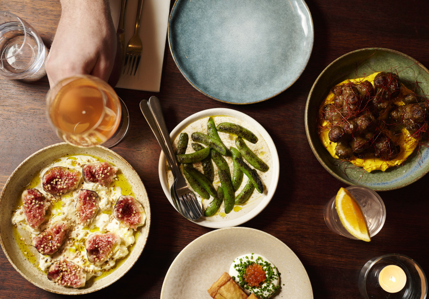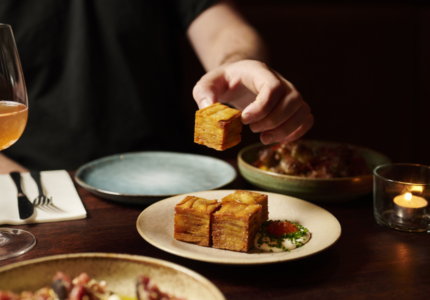 “It’s a beautiful bar, always with a great vinyl soundtrack,” Louchart-Fletcher says. “You’ve got these glorious nooks and crannies, little green booths which hear all of Canberra’s secrets.” Sit in for wine-friendly snacks like the beef tongue skewer with anchovy mayo.